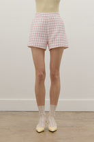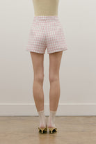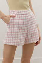 RIBBON TWEED MID WAIST FLAT FRONT SHORTS