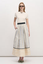 EMBROIDERED STRIPE MIDI FULL SKIRT
