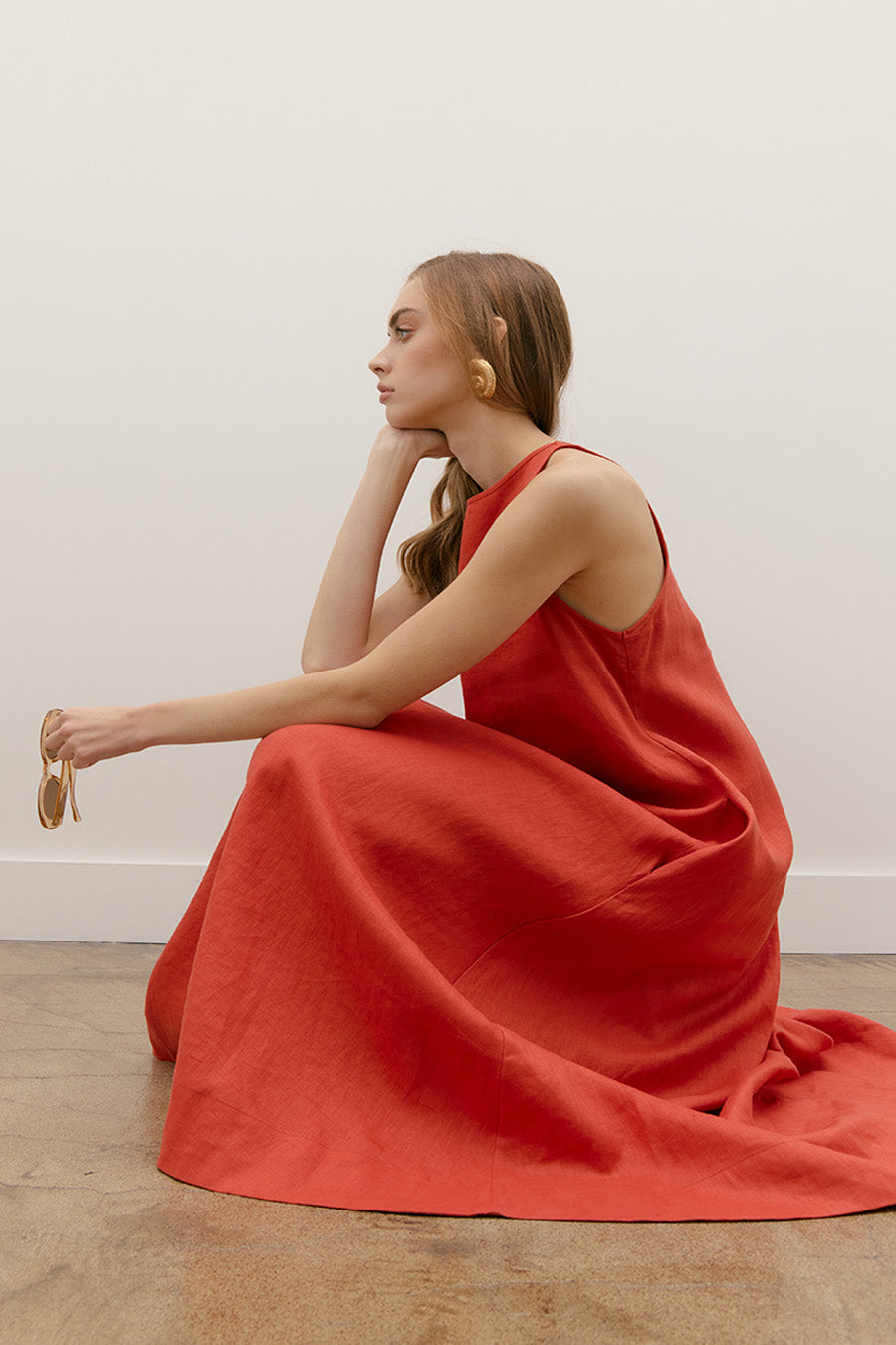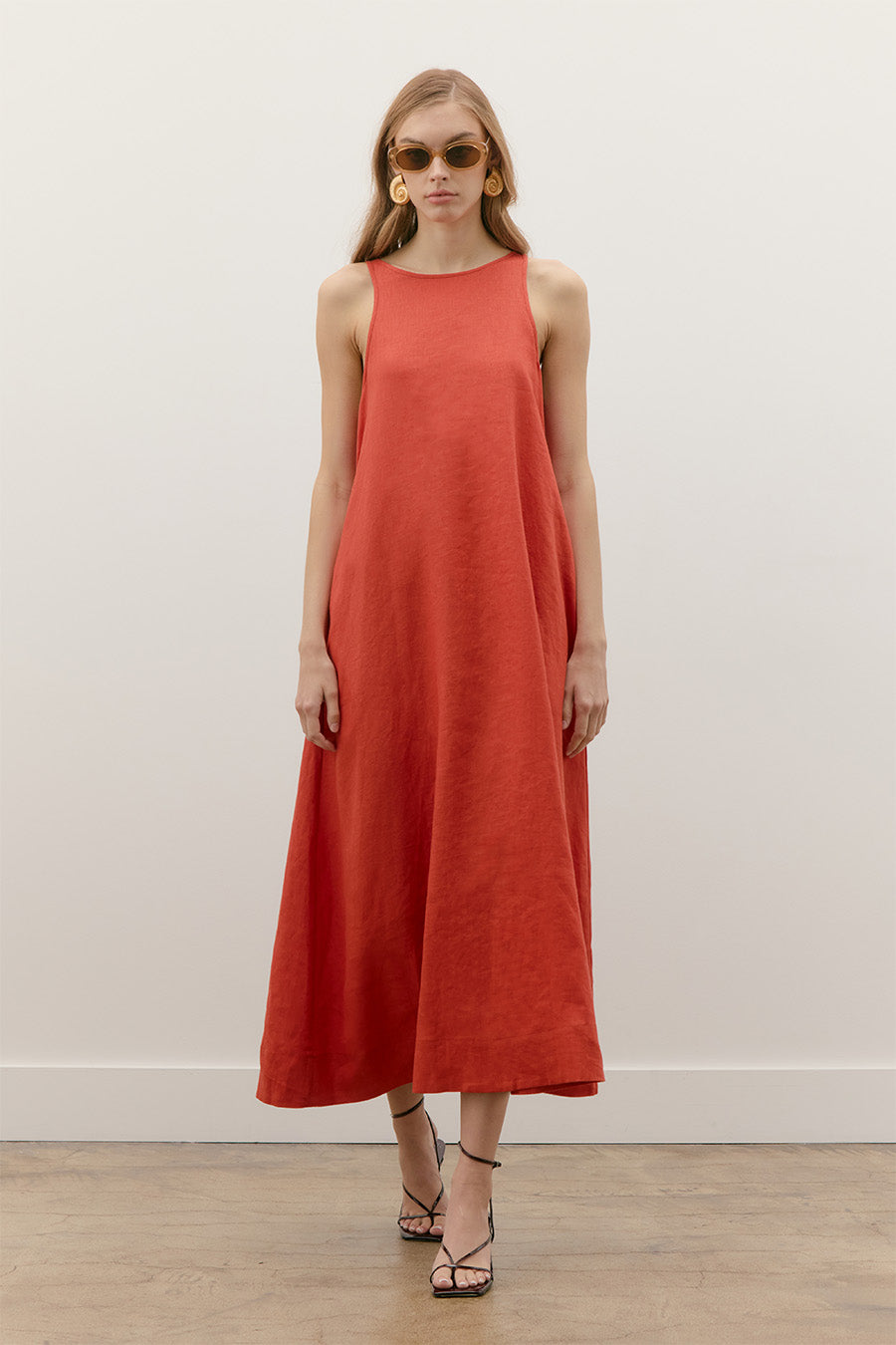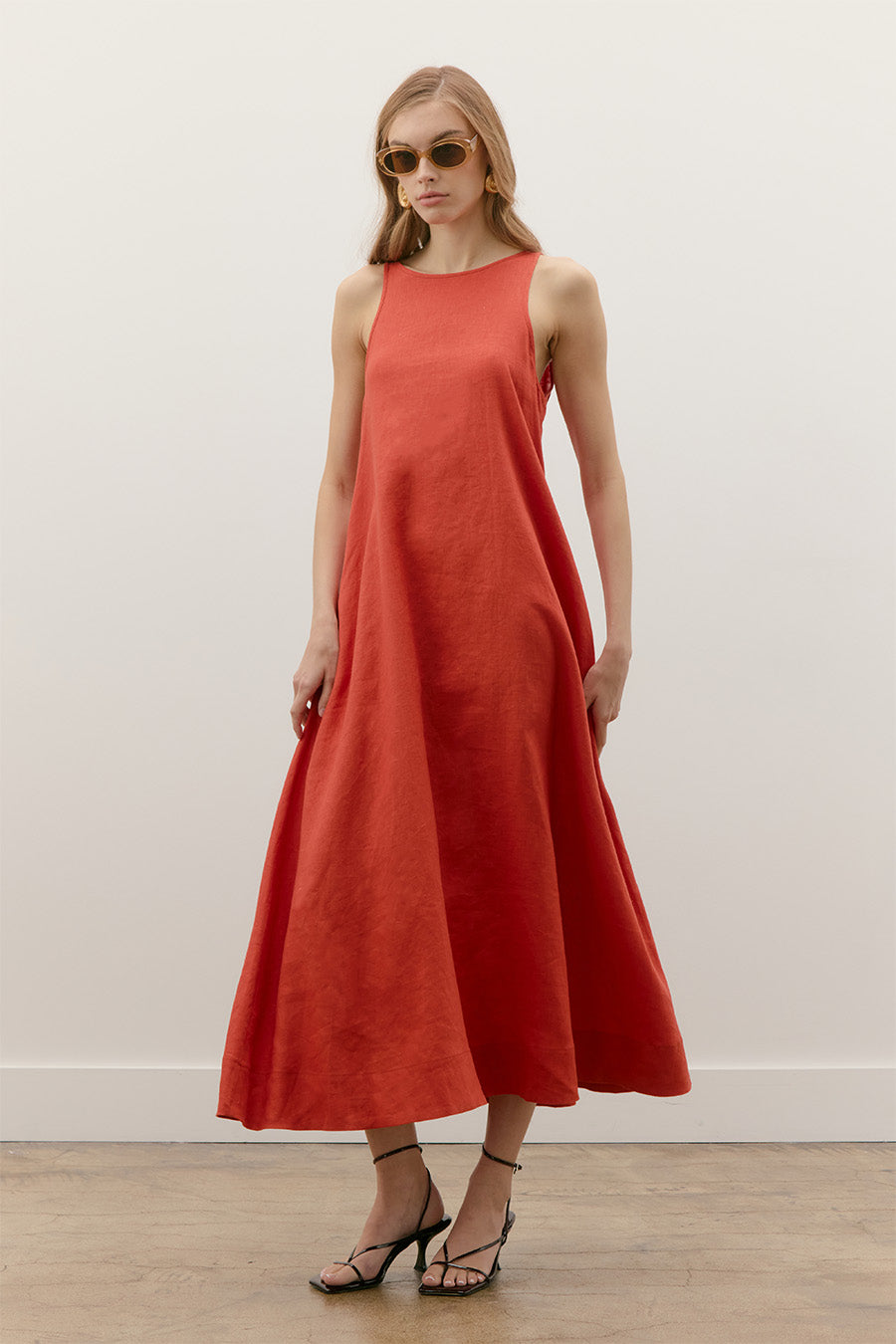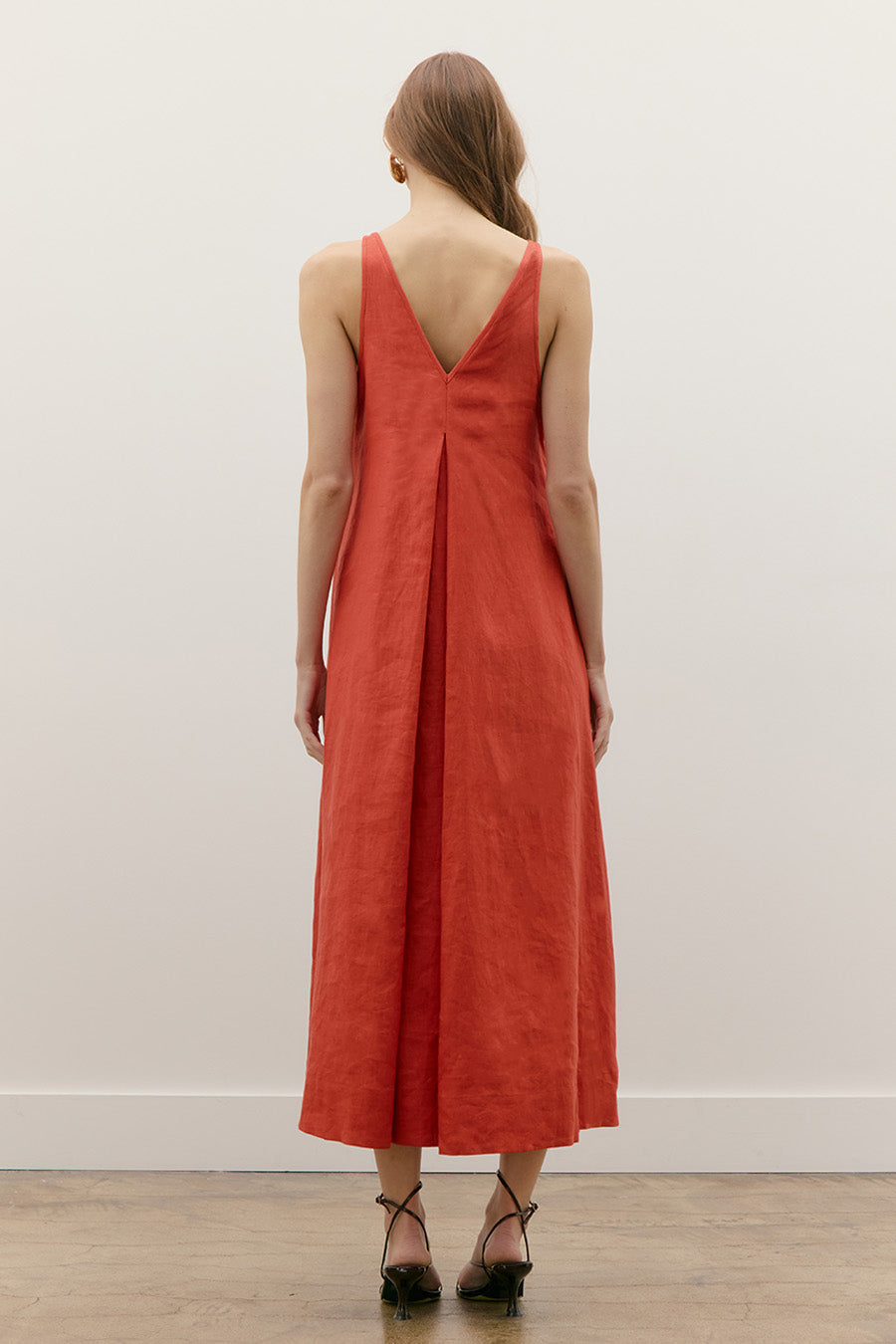 LINEN A-LINE V-BACK NECK TANK MAXI DRESS