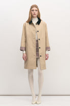 TRENCH COAT WITH PLAID COMBO AND VELVET COLLAR