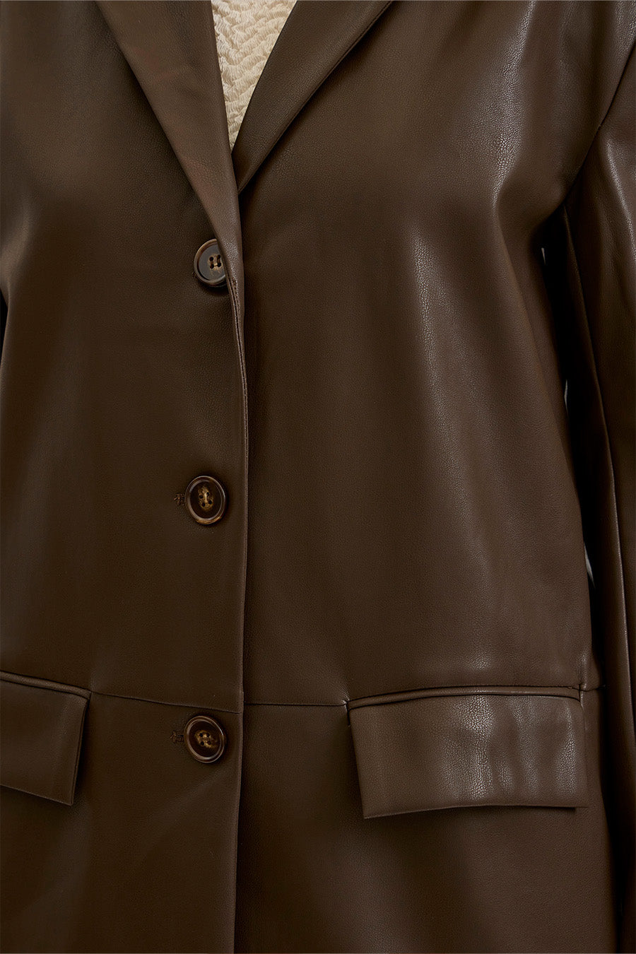 FAUX LEATHER OVERSIZED BLAZER JACKET