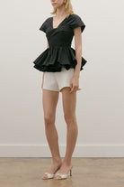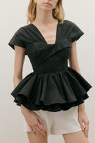 COTTON POPLIN BUSTIER TWIST PEPLUM TOP