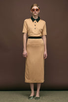 GINGHAM KNIT SHORT SLEEVE POLO TOP