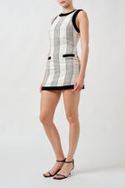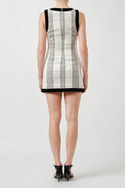 PLAID BOUCLE MINI DRESS W/ VELVET BINDING