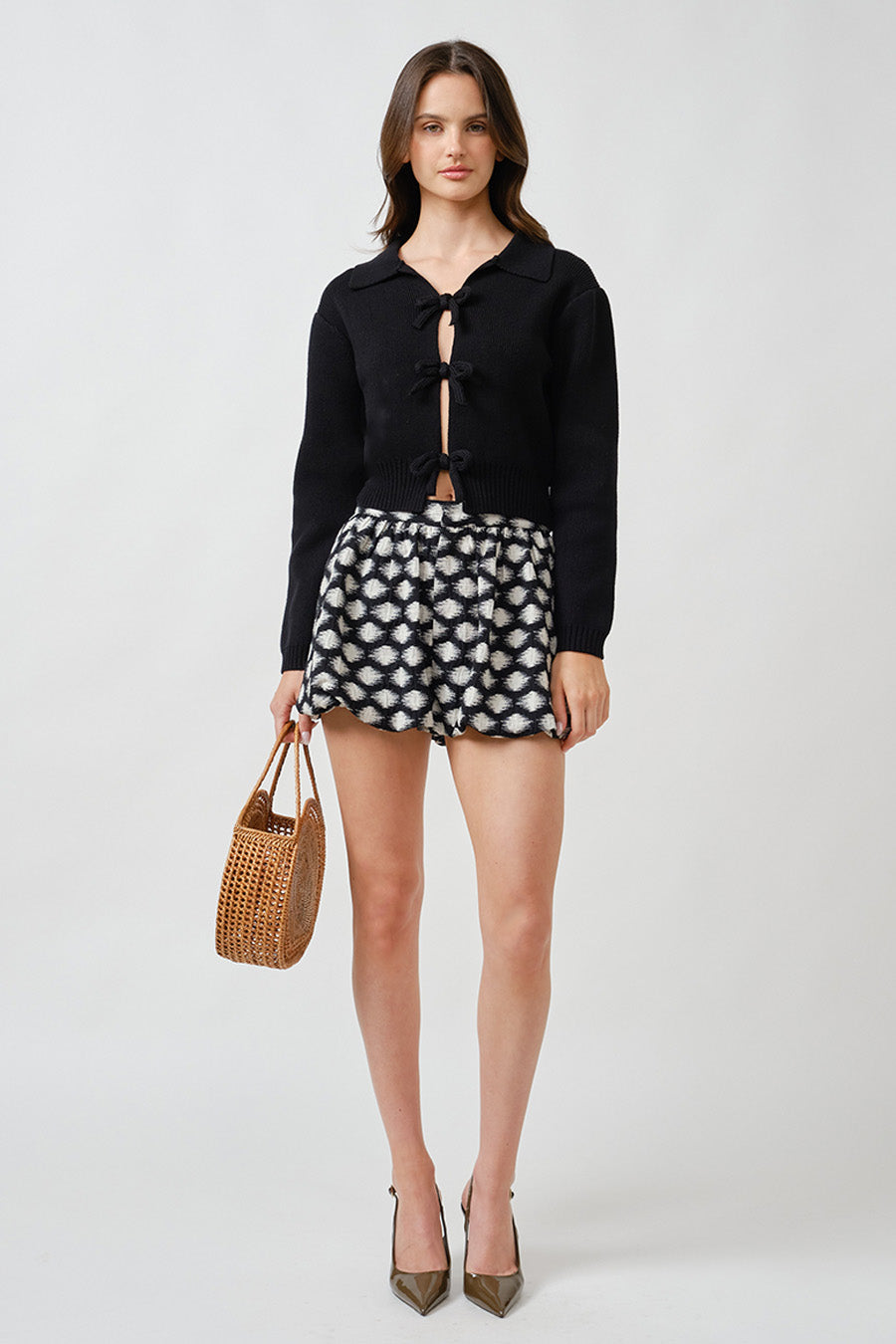 COLLARED SWEATER WITH BOW TIES