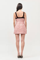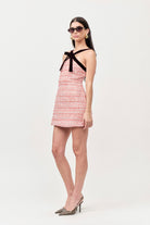 BOUCLE SHIFT MINI DRESS WITH VELVET BOW