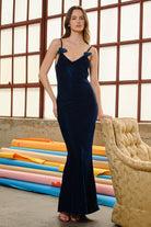 SILK VELVET MAXI SLIP DRESS WITH ROSETTES