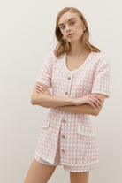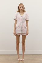 RIBBON TWEED U NECK SHORT SLEEVE LONGLINE JACKETS